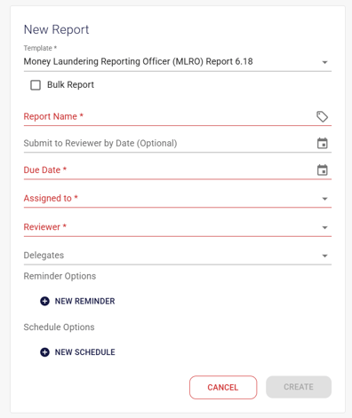 When you create a new Report, you will be asked to assign it to the User who is responsible for completing it.